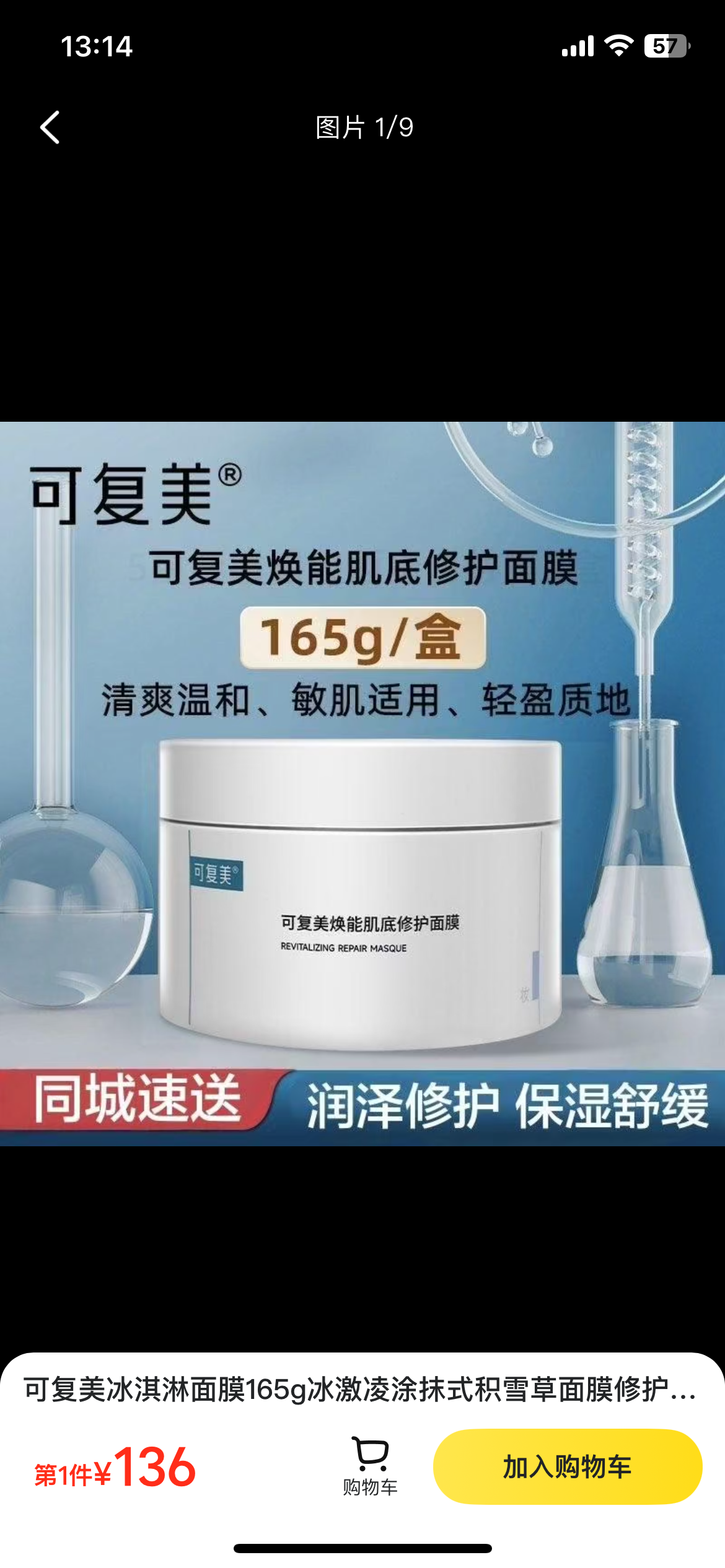 可复美冰淇淋面膜165g冰激凌涂抹式积雪草面膜修护敏感肌肤保湿提亮肤色1罐