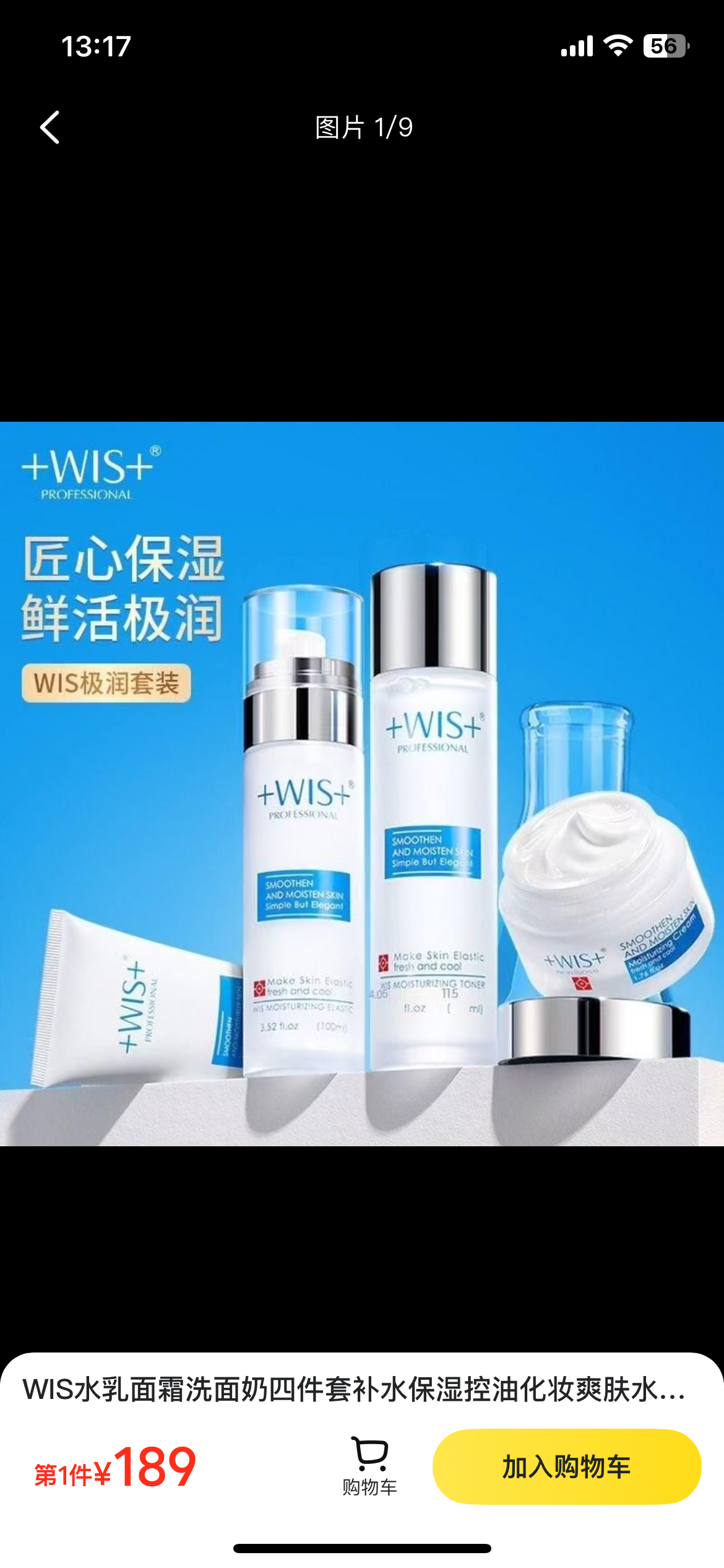 WIS水乳面霜洗面奶四件套补水保湿控油化妆爽肤水面霜七夕套装礼盒365g/盒