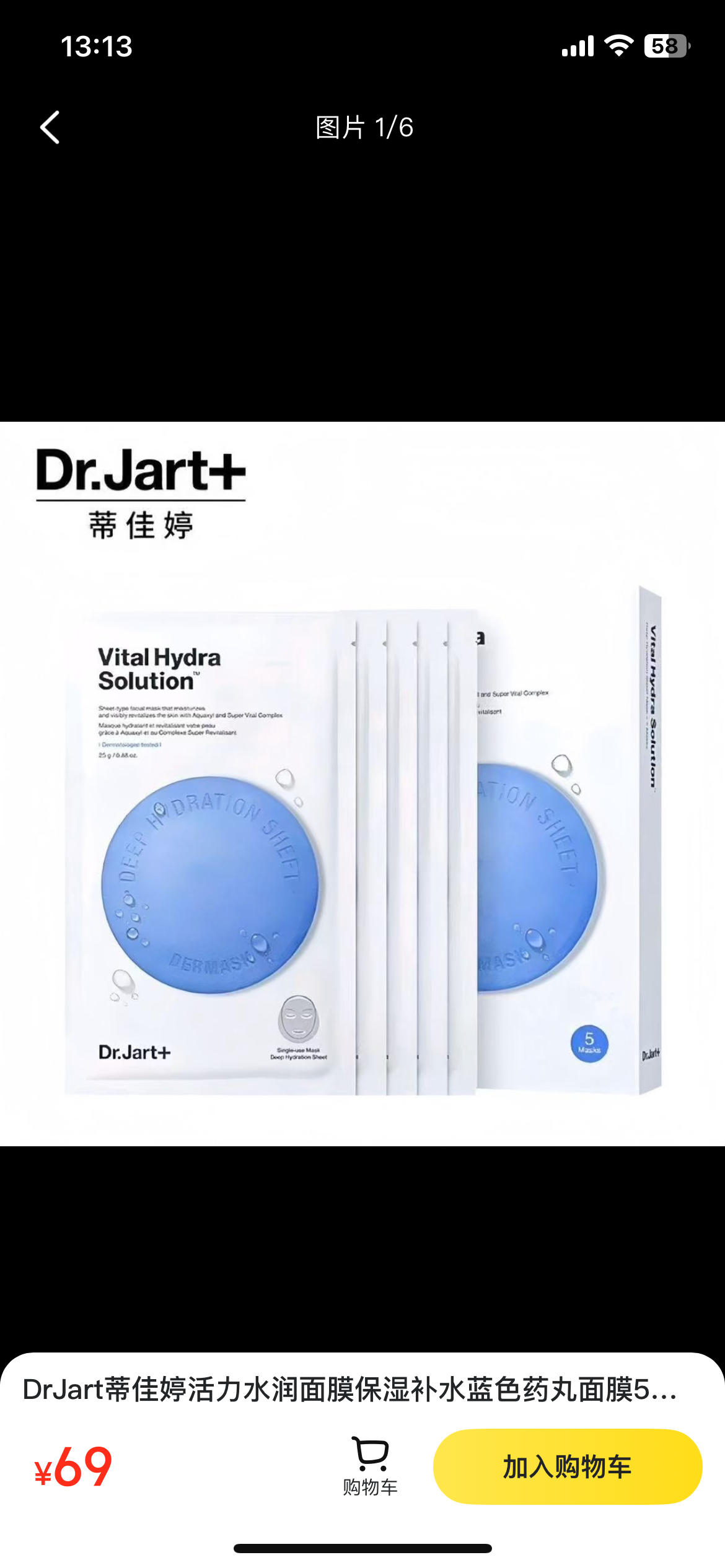 DrJart蒂佳婷活力水润面膜保湿补水蓝色药丸面膜5片/盒