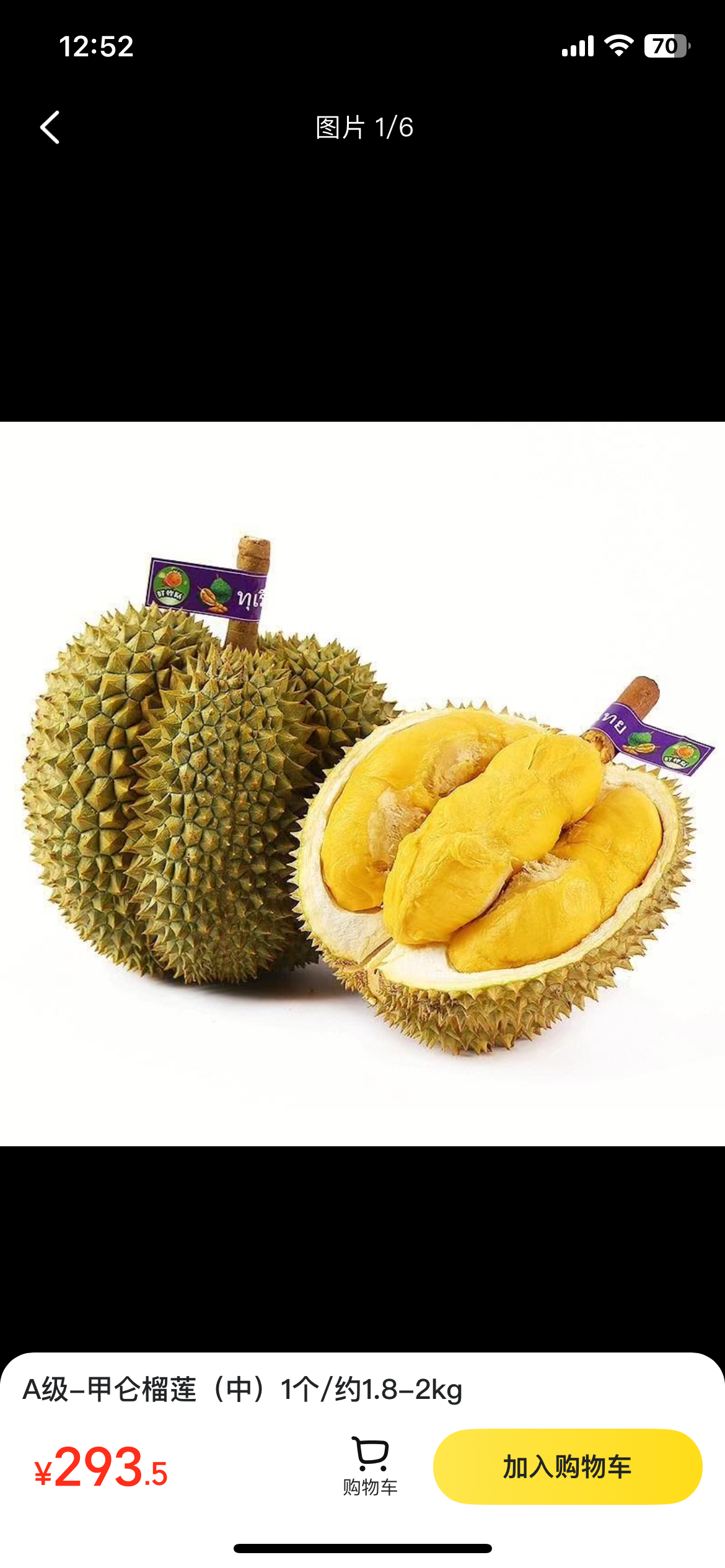A级-甲仑榴莲(中)1个/约1.8-2kg